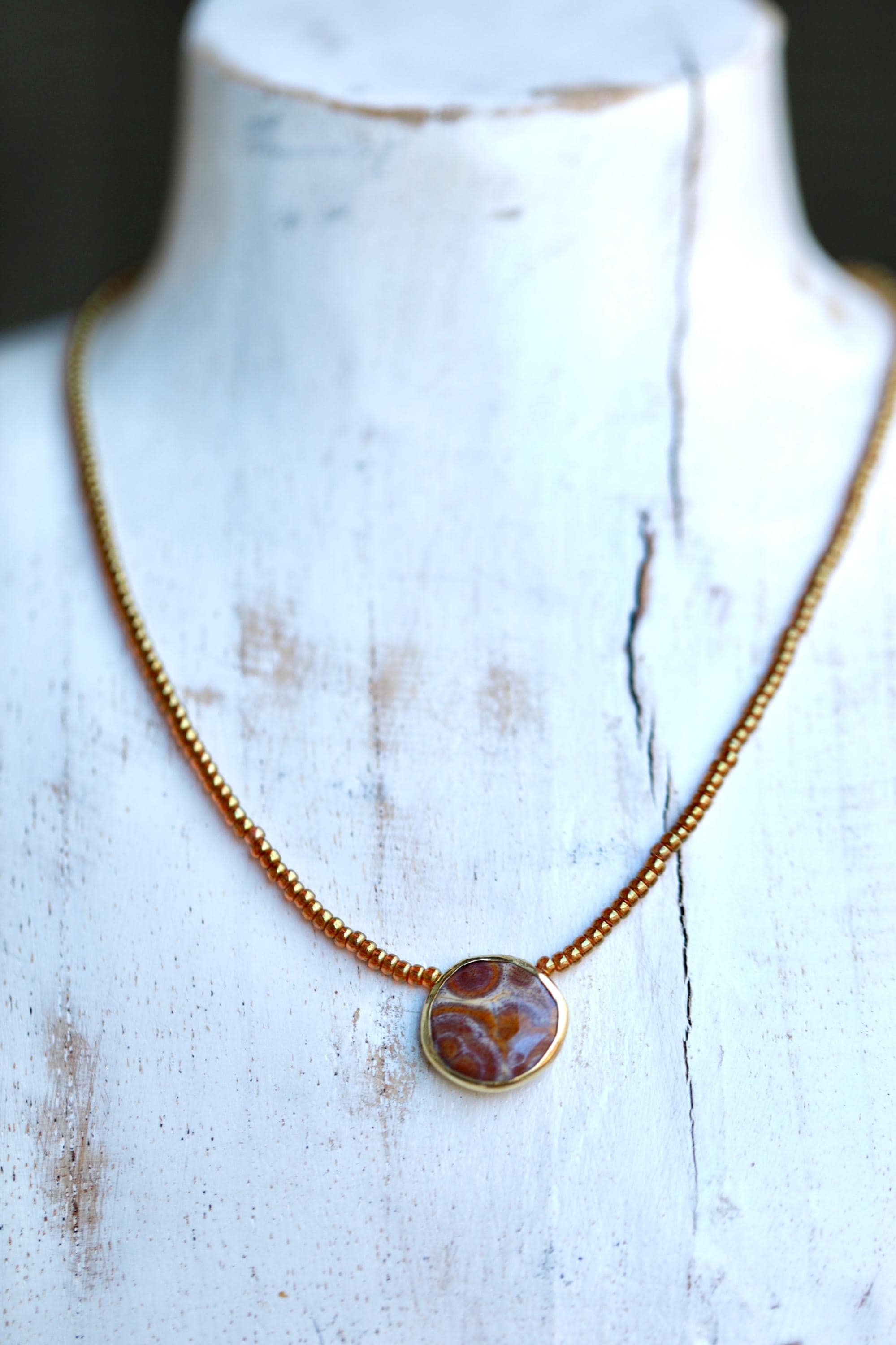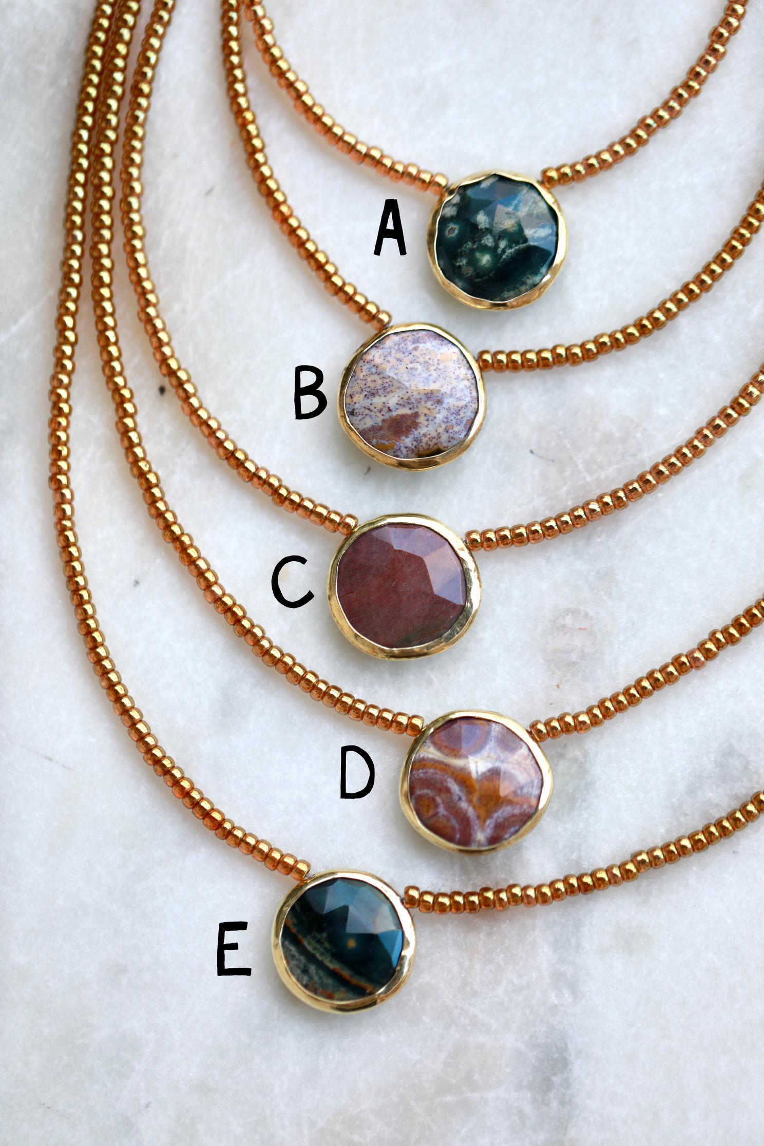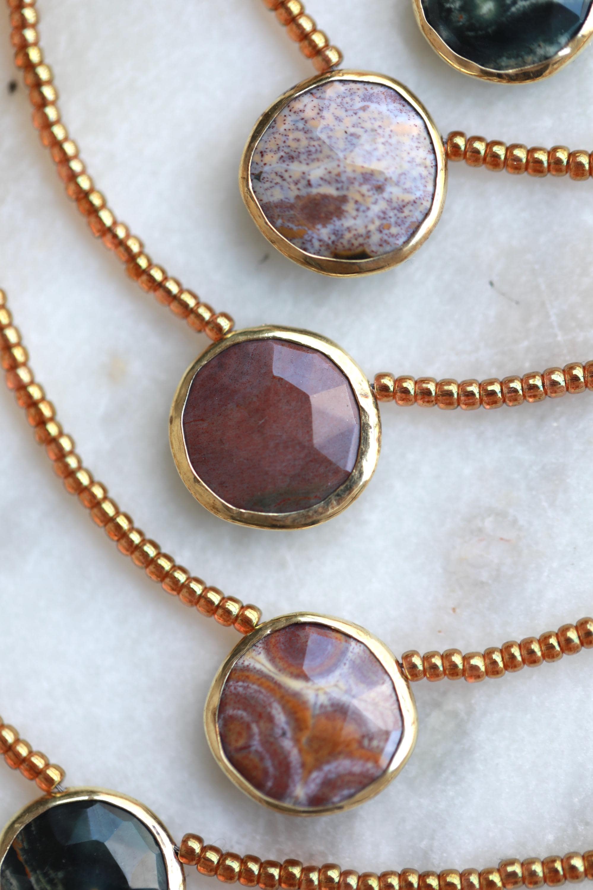 🌊 Like waves meeting the shore, these Ocean Jasper coin pendant necklaces bring calm, balance, and beauty to your everyday. A single polished ocean jasper—each with its own mesmerizing pattern of colors—are framed in a sterling silver bezel with gold plating, and strung on Japanese glass beads. Gold filled lobster clasp and extender chain for adjustable comfort.