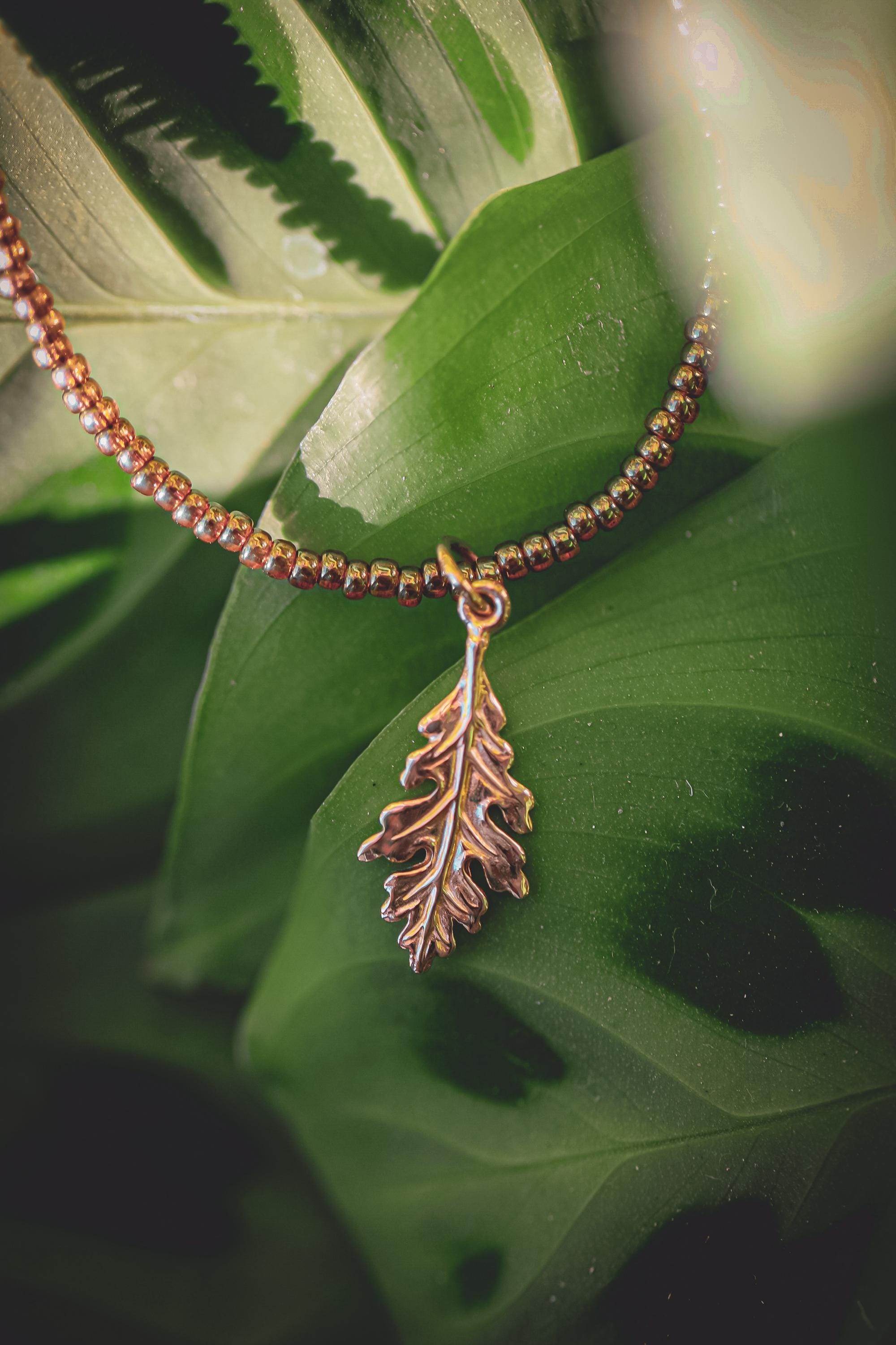 For centuries, the mighty oak has symbolized strength, resilience, courage, and wisdom. The leaf—delicate yet enduring—reminds us of nature’s rhythms and our connection to the world around us. Wearing an oak leaf is like carrying a tiny piece of the forest with you… a grounding charm that brings calm, balance, and a sense of rootedness.