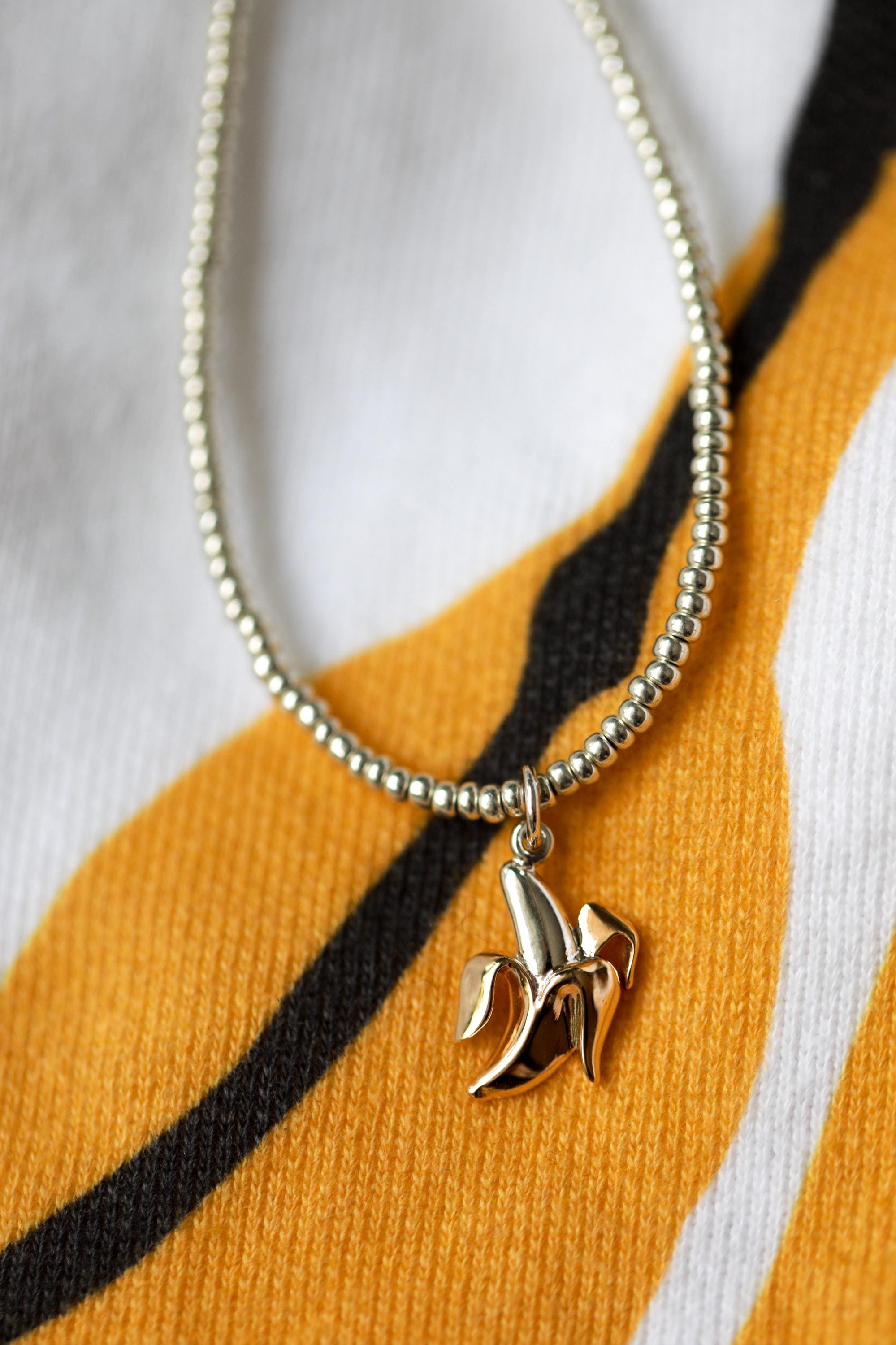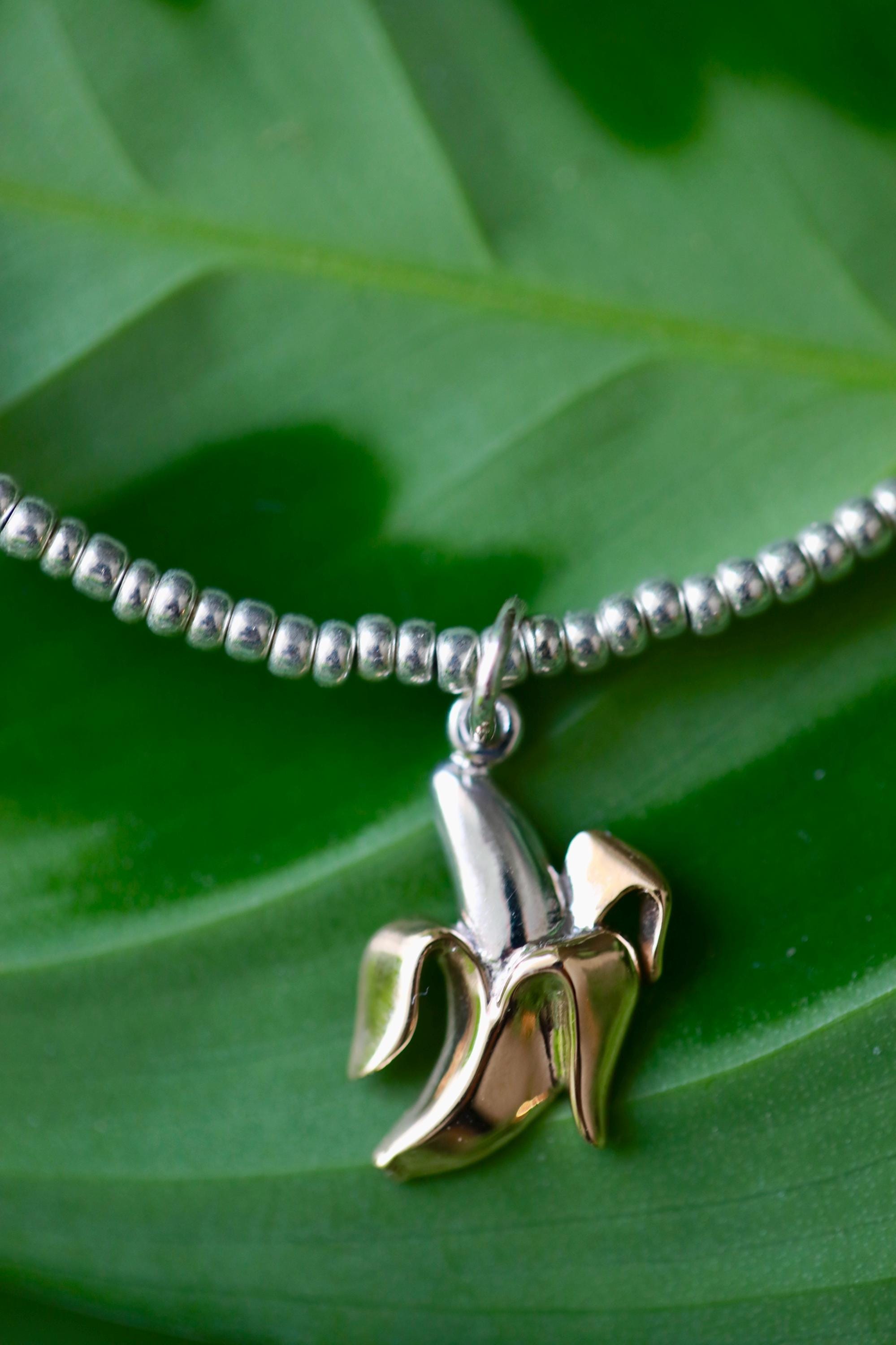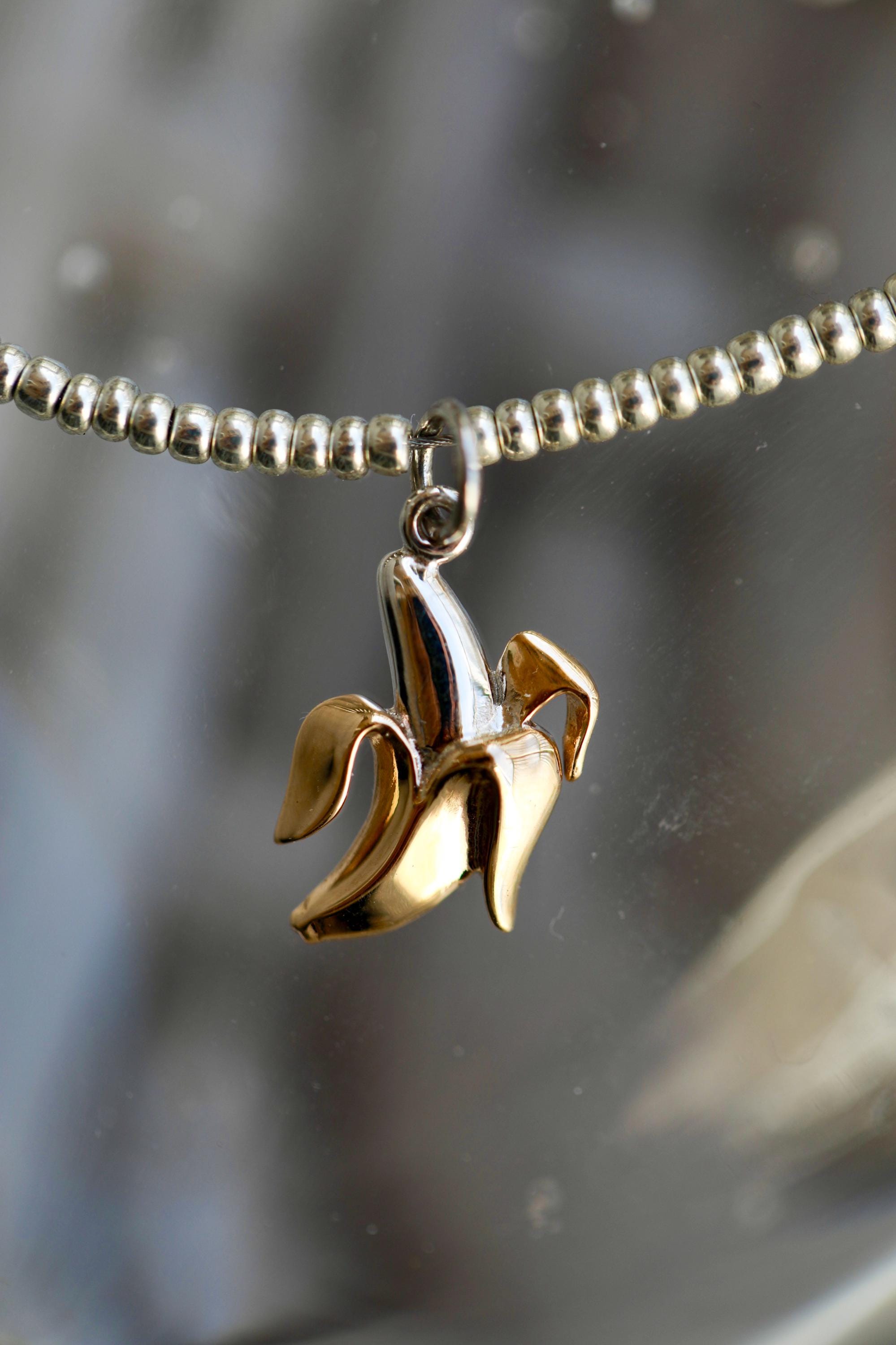 π Go bananas for this playful, artful charm! Handcrafted from sustainable sterling silver (made with reclaimed and recycled silver) and warm bronze, this half-peeled banana pendant brings a wink of humor and golden shine to your jewelry collection.
