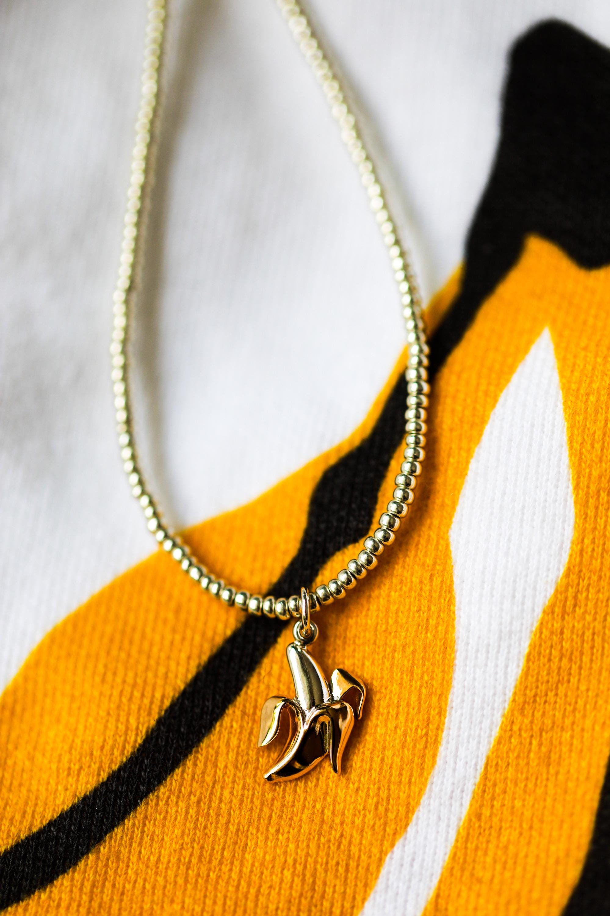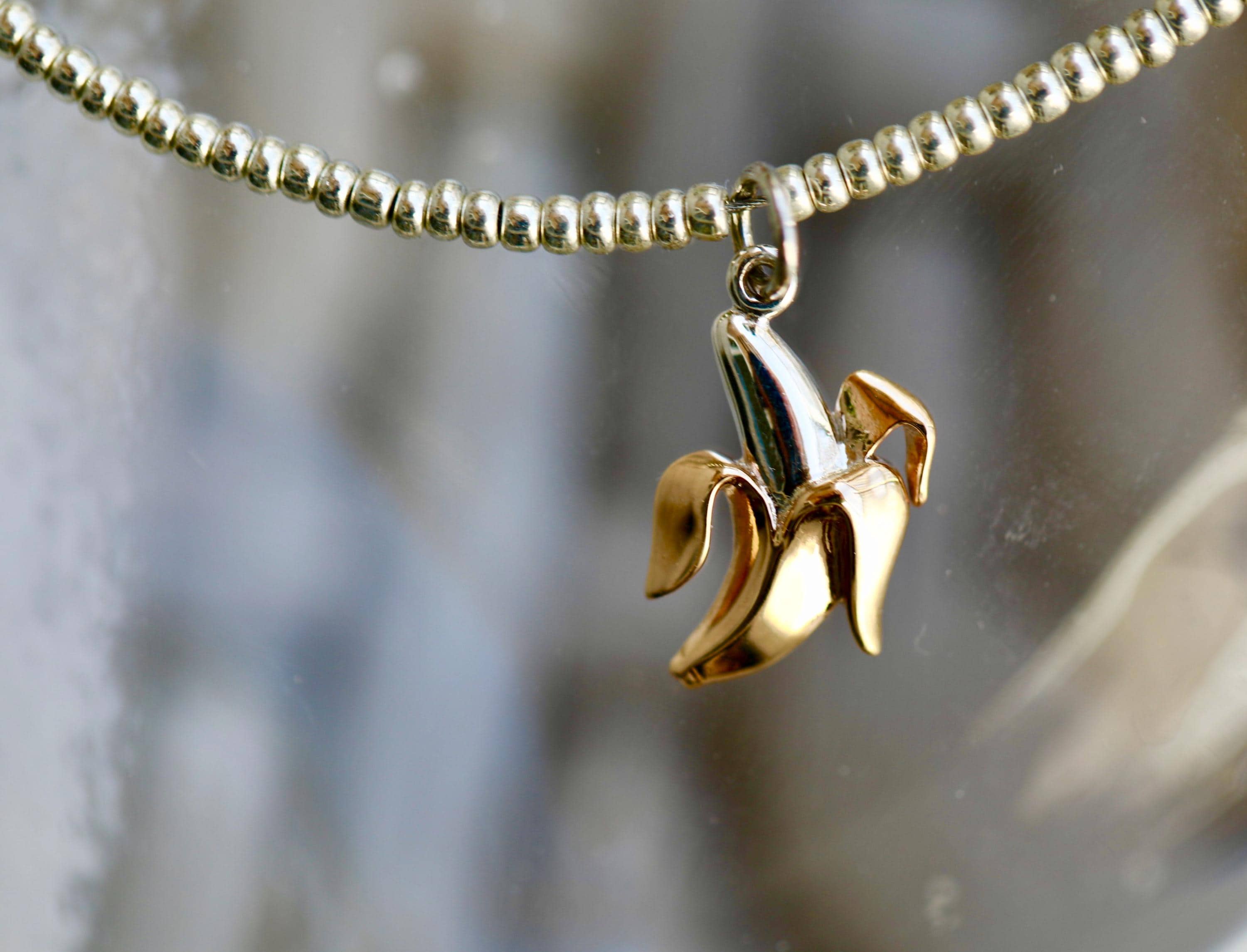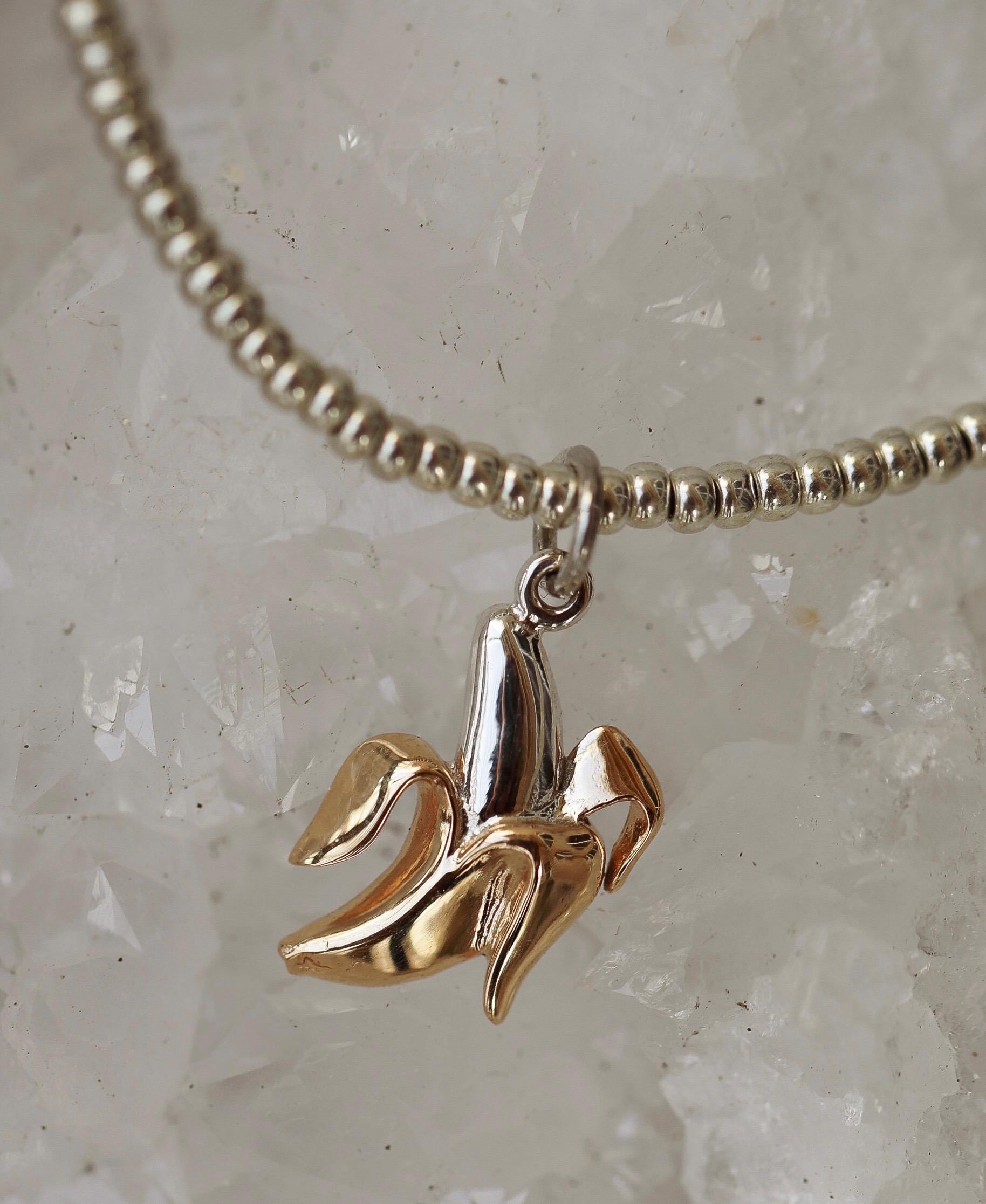 π Go bananas for this playful, artful charm! Handcrafted from sustainable sterling silver (made with reclaimed and recycled silver) and warm bronze, this half-peeled banana pendant brings a wink of humor and golden shine to your jewelry collection.