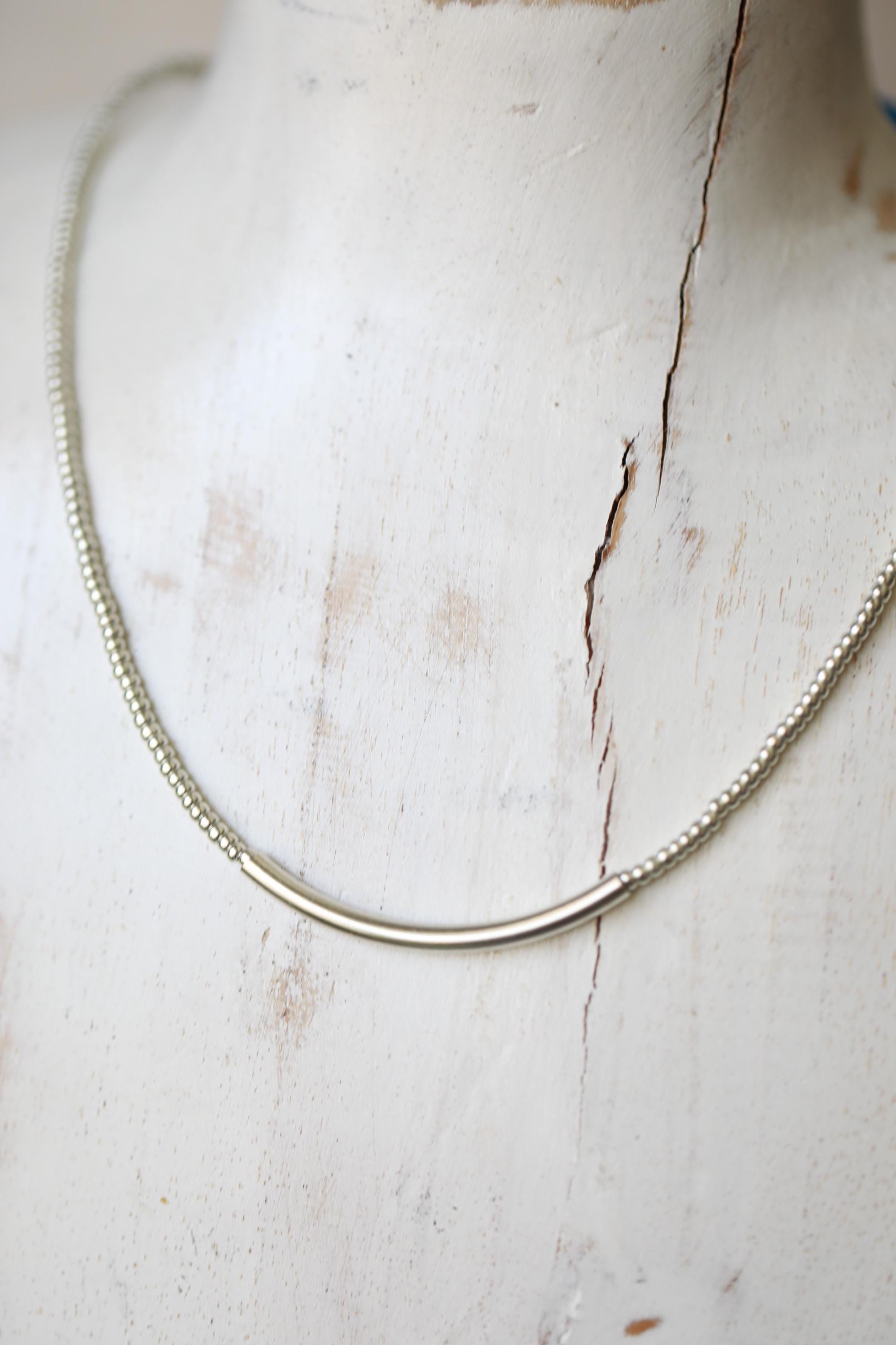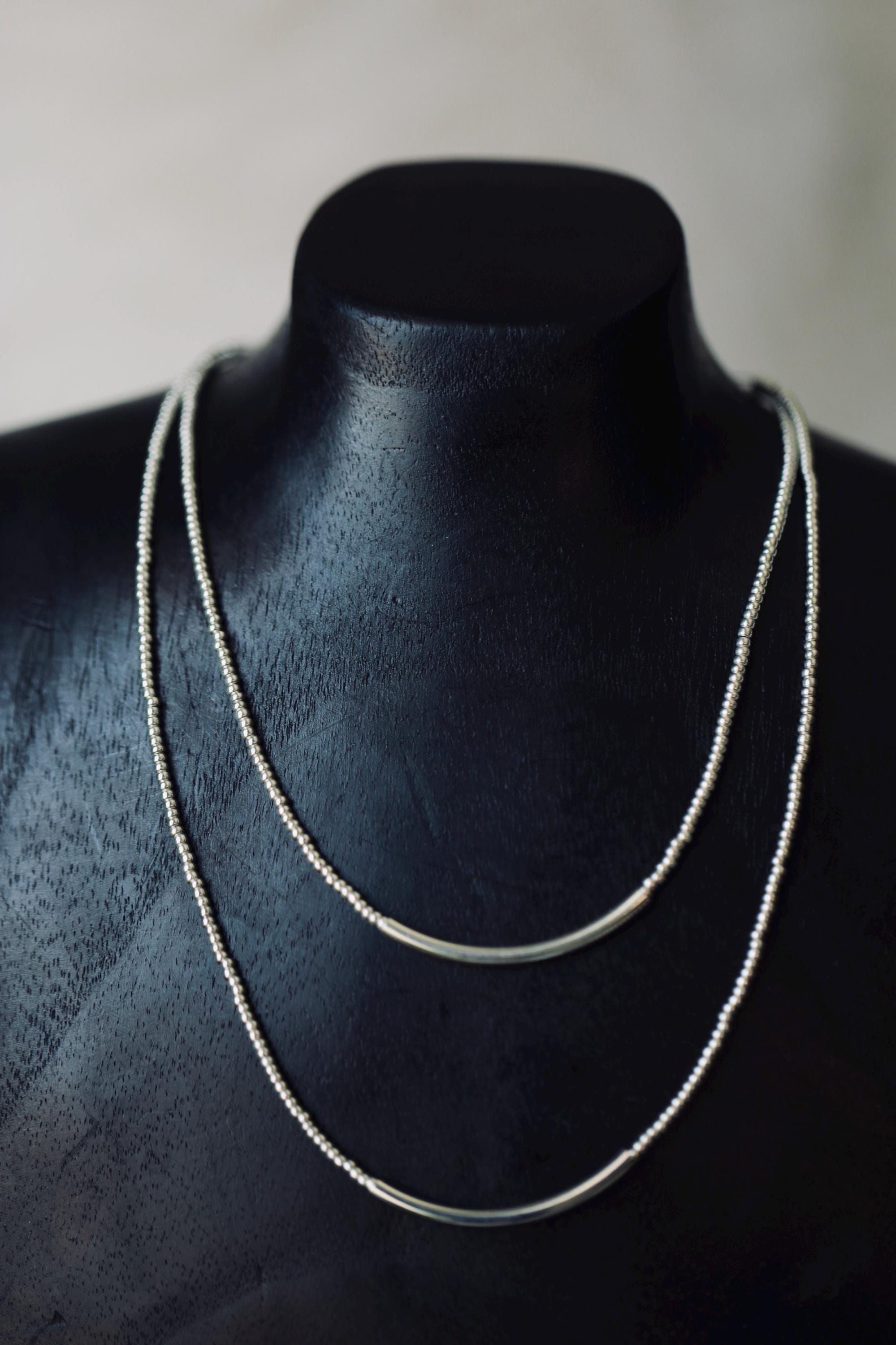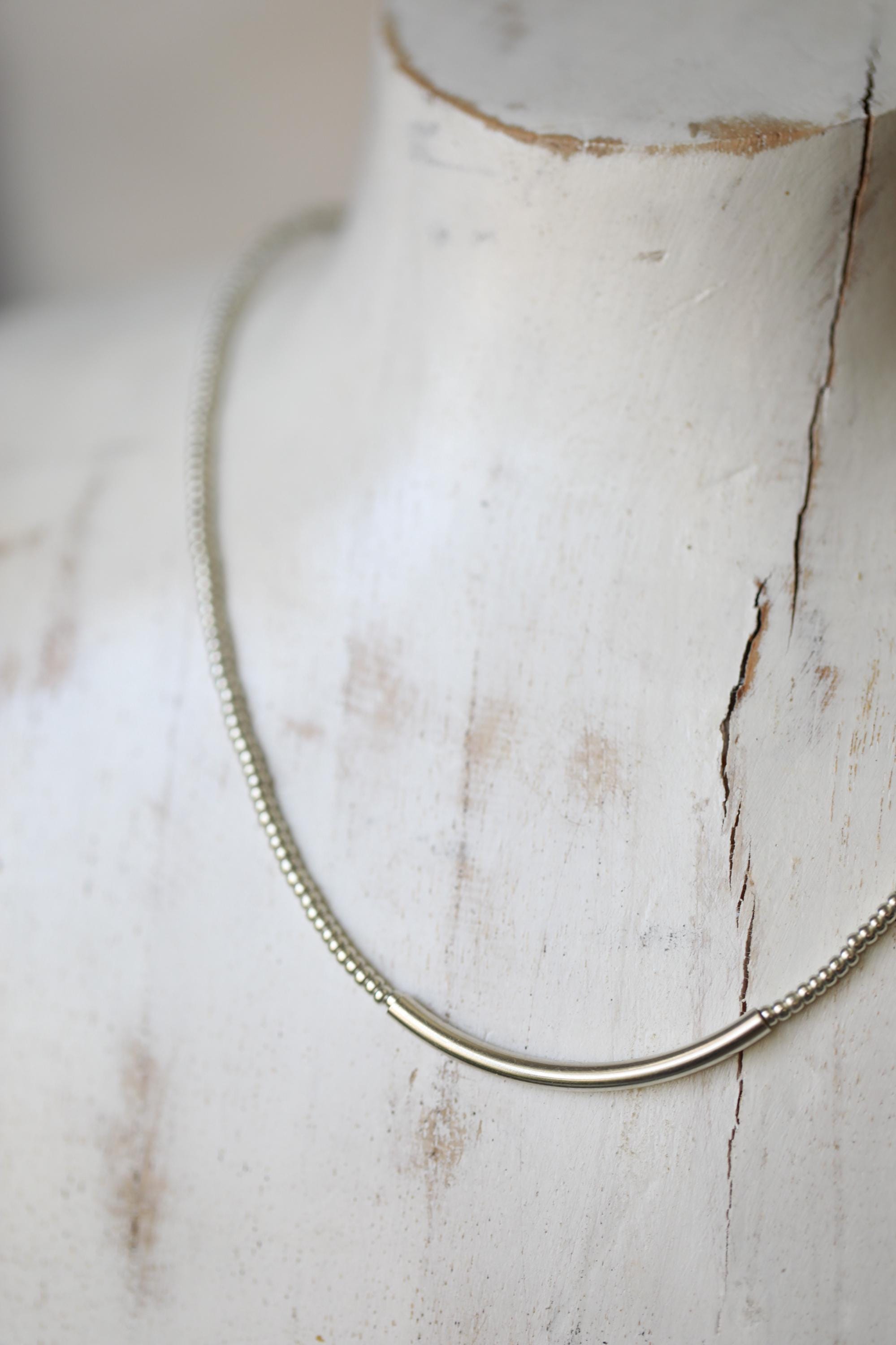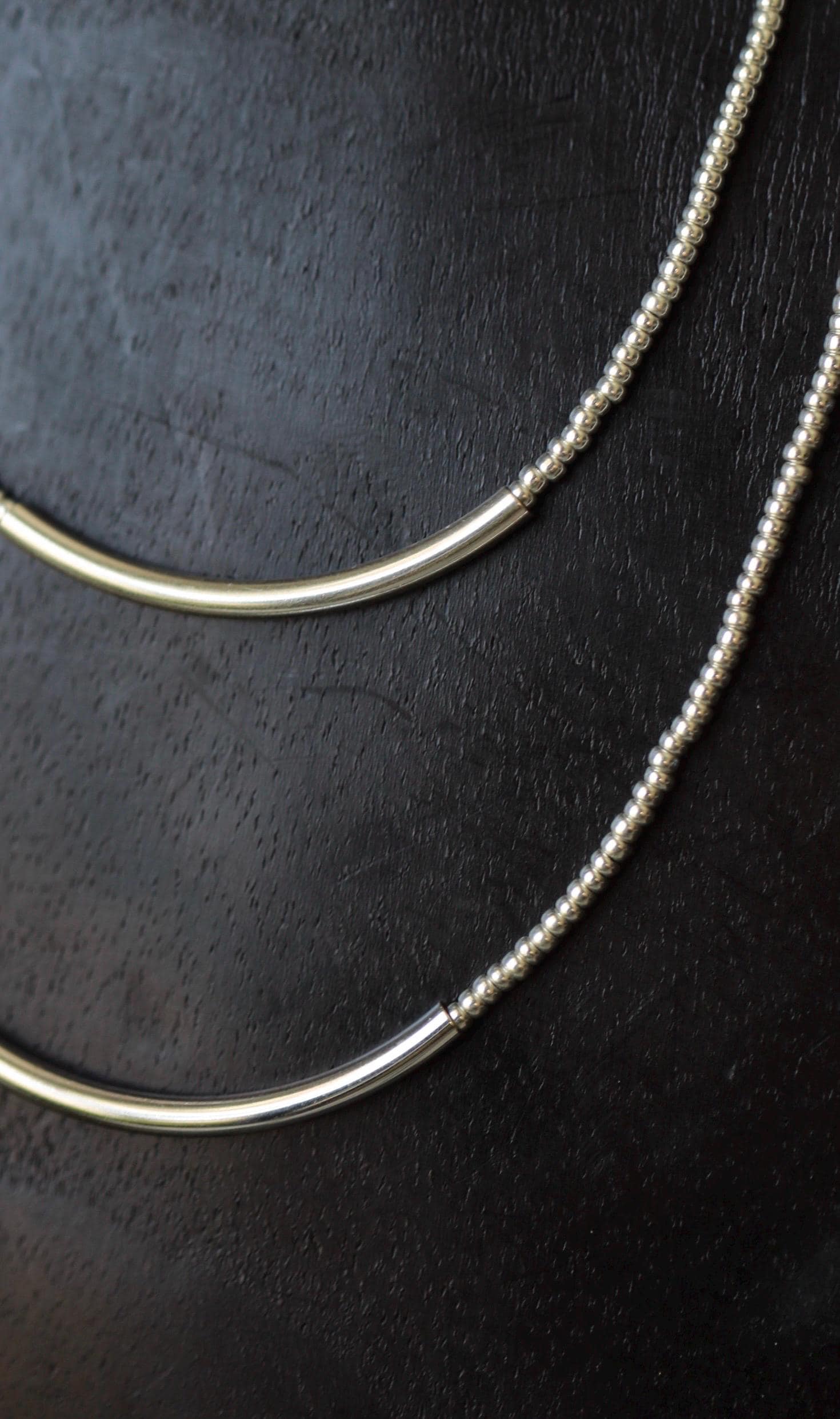 Meet your new everyday favorite. This minimalist sterling silver curved tube necklace is the perfect blend of simple elegance and effortless style. Designed to sit beautifully at 16", it layers like a dream with your longer pieces—or shines all on its own.