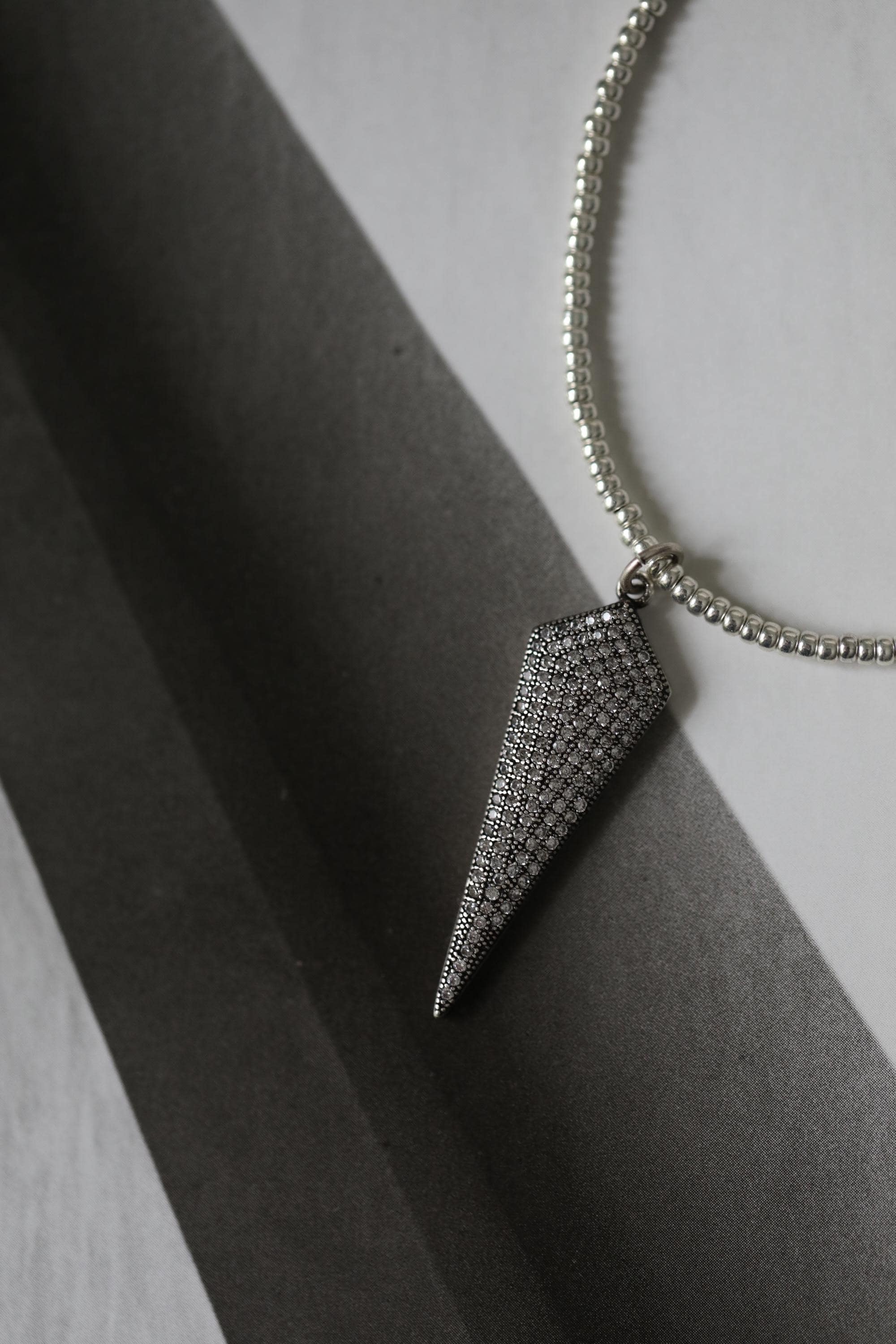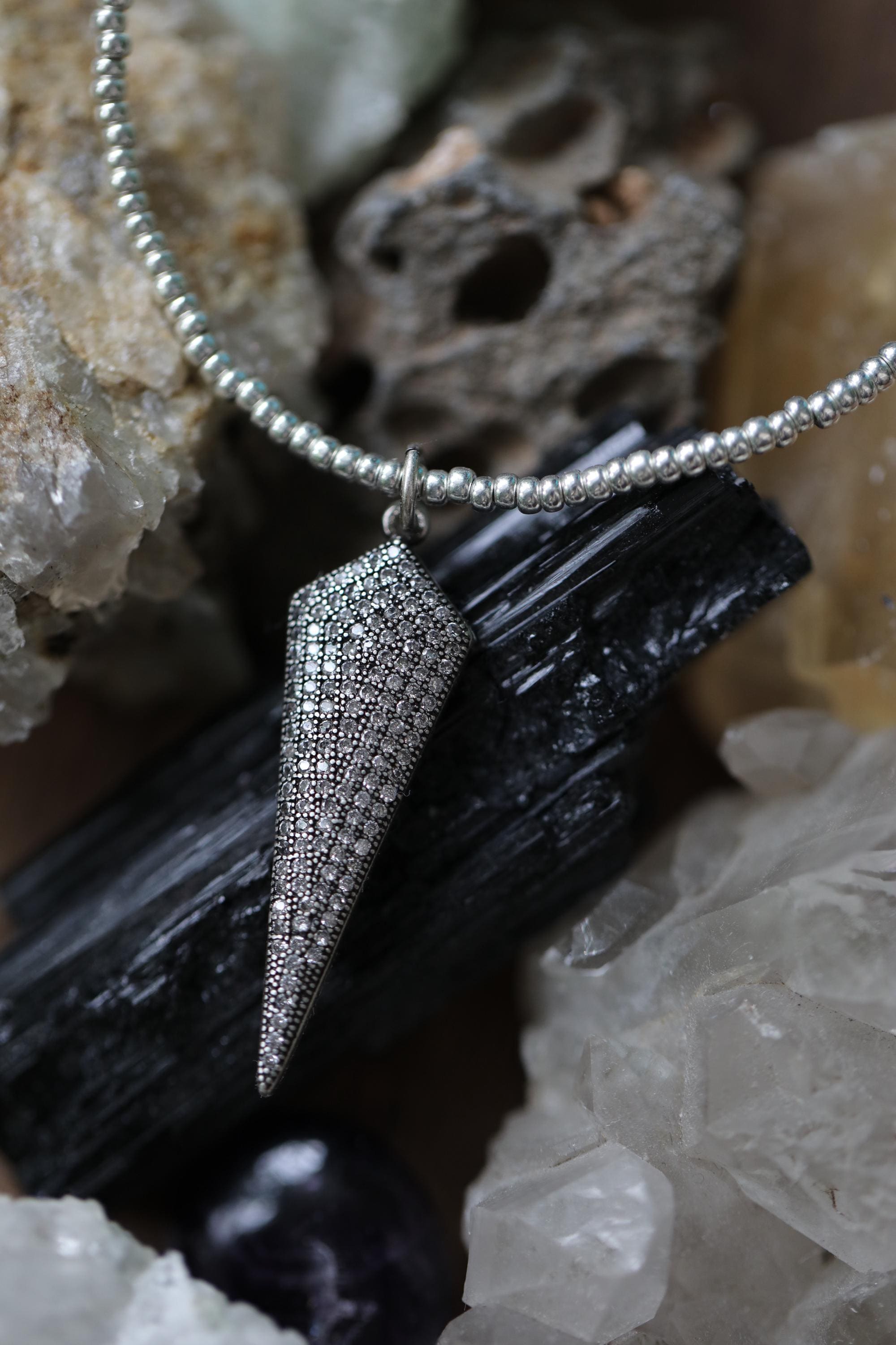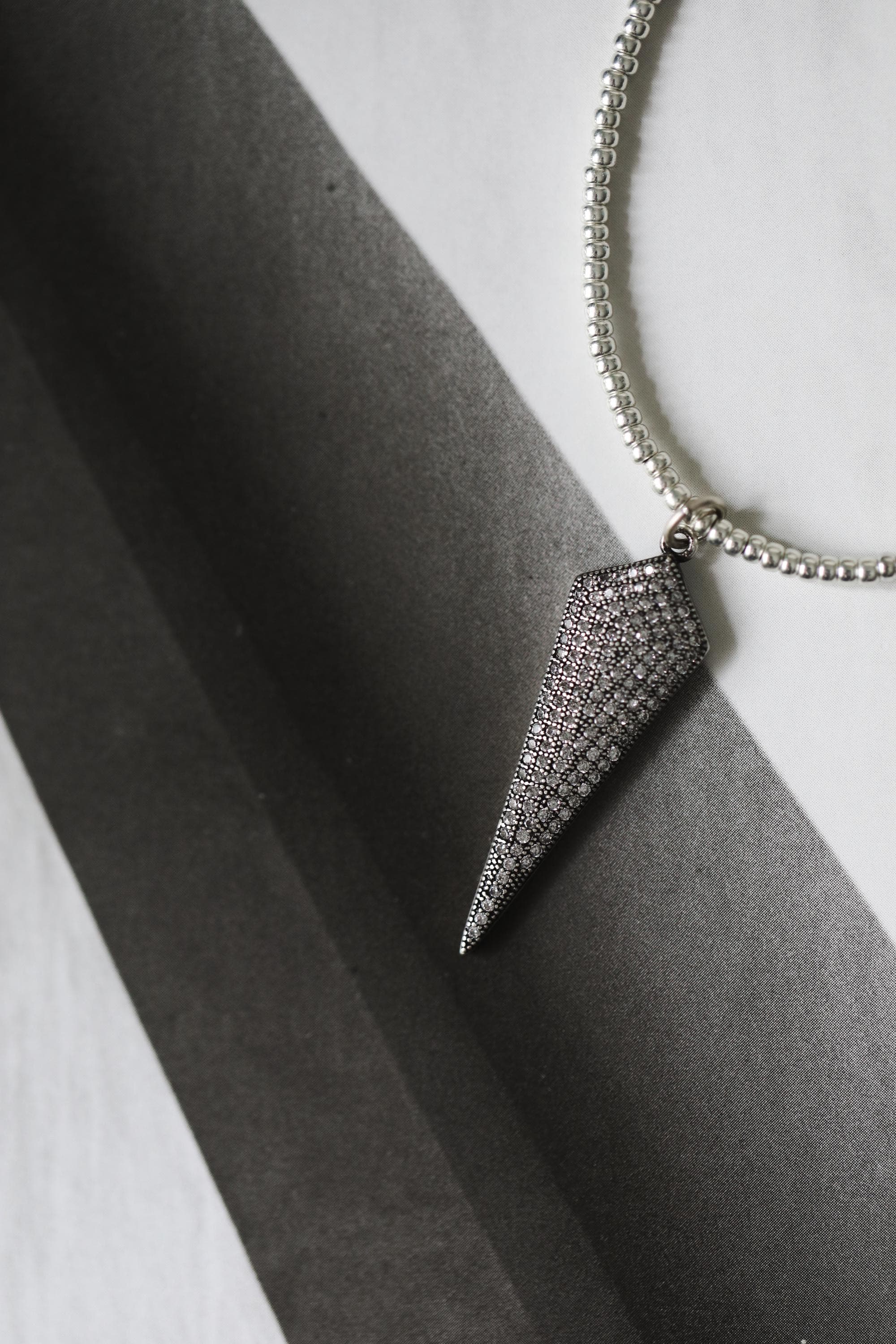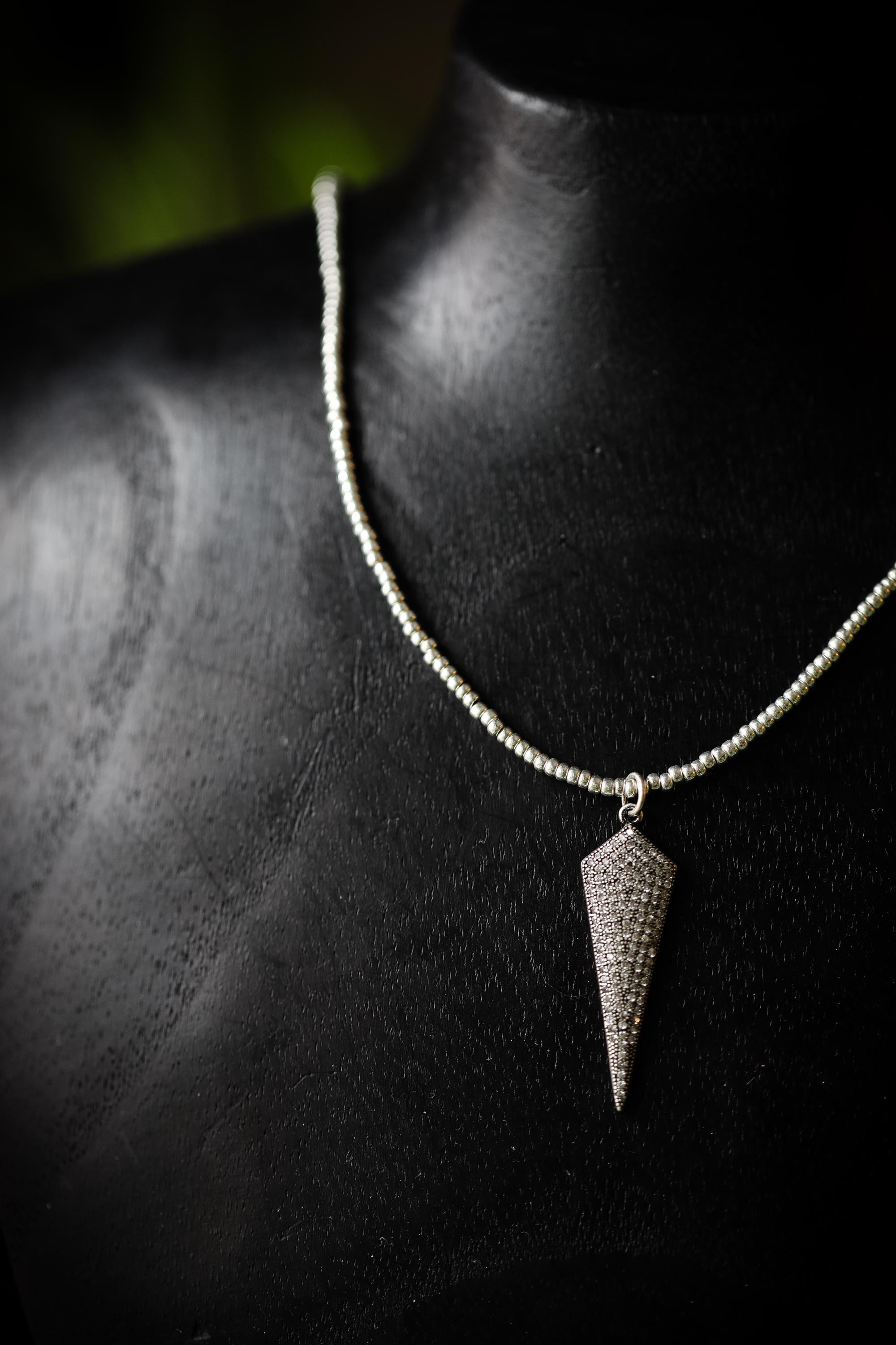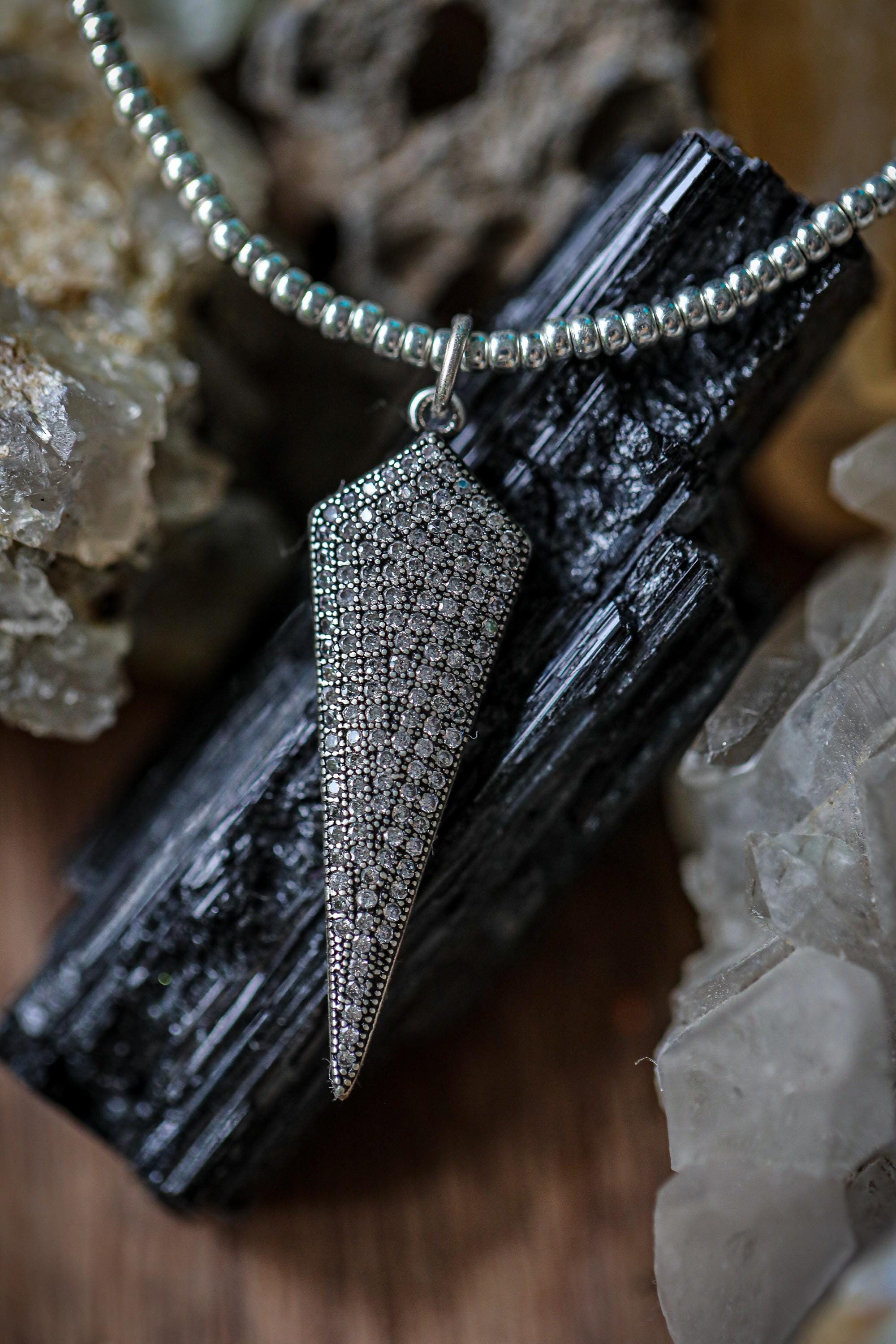🖤 ⚡️A little sparkle with a bold edge. This striking spike pendant necklace features a shimmering pavé surface of tiny cubic zirconia stones that catch the light beautifully. You'll love the modern, slightly edgy accent that layers effortlessly or stands out on its own.